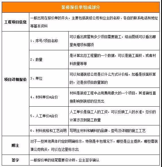 1)看施工項(xiàng)目是否全面,是否漏掉防水、頂面膩?zhàn)踊蚱渌匾?xiàng)目,避免后期業(yè)主迫于無(wú)奈增加這項(xiàng)施工的開(kāi)支,超出預(yù)算。