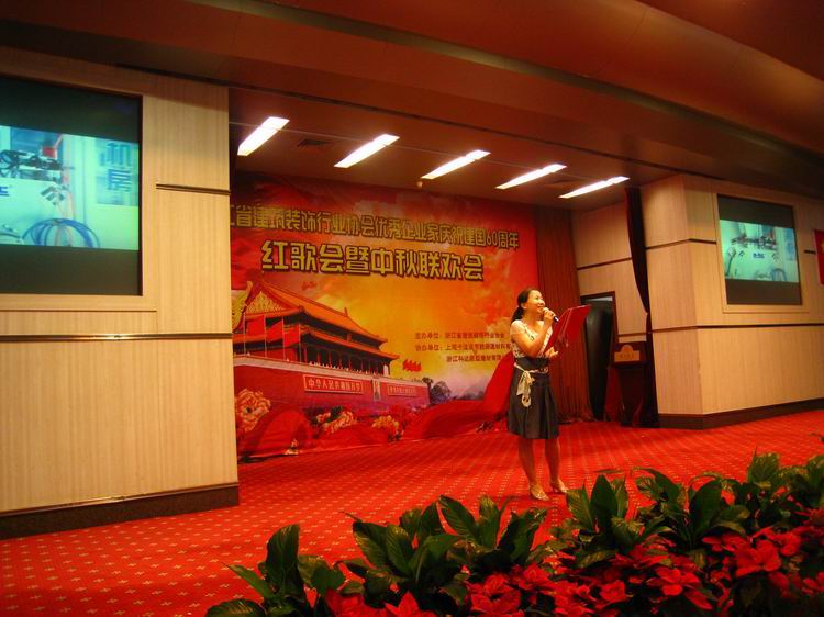 9月25日下午,公司參加了省家裝協(xié)會舉辦的慶祝建國60周年紅歌會暨中秋聯(lián)歡會,櫥柜部陸美勤進(jìn)行聲情并茂的詩朗誦《問候您,祖國》。博得臺下的與會人員的陣陣掌聲。此外也在眾多的歌舞節(jié)目中脫穎而出獲得優(yōu)勝獎(jiǎng)。