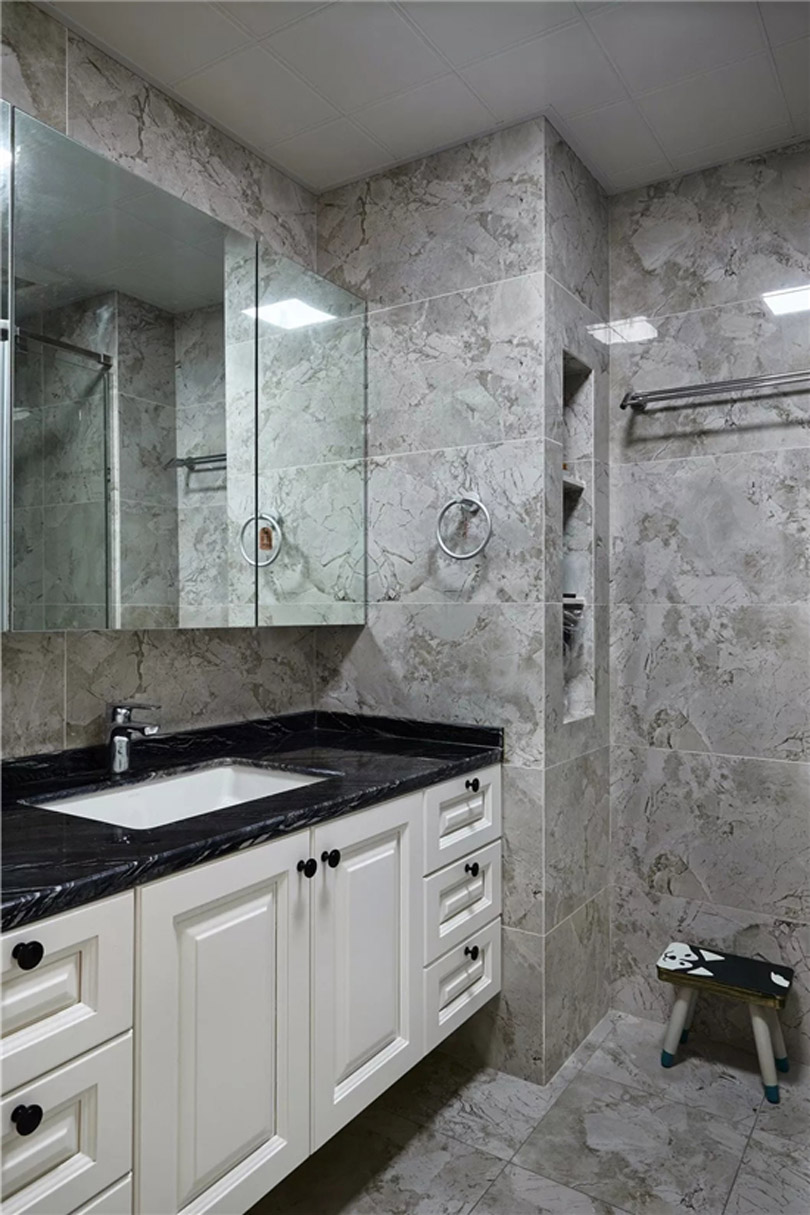 而對于淋浴隔斷的濕區來話,可以直接利用下水管道位置做出壁龕的設計,用于清潔用品的擺放,這樣就解決了淋浴隔斷位置的收納空間不足問題,同時讓淋浴位置更加漂亮,最重要的是在洗澡的時候就能非常方便的取用存放,順手的動作輕松舒適。