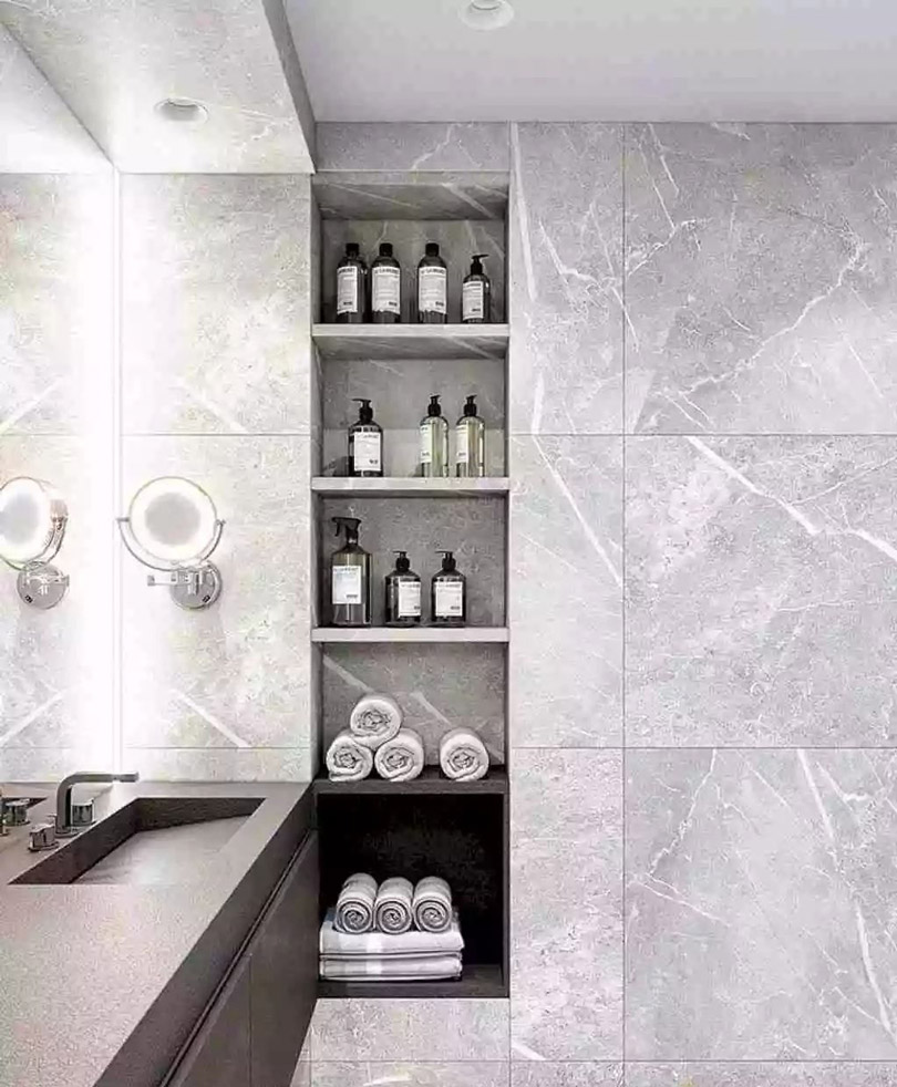 一聽到衛生間的空間利用,大多數人第一想到的就是衛浴柜的柜子能夠做收納作用,其他的基本都是固定使用的裝置,今天要說說的是衛生間做壁龕,衛生間里壁龕的樣式以多種方形呈現,需要根據衛生間的現場狀況來量身設計,大家一定不要錯過壁龕這件“神器”。