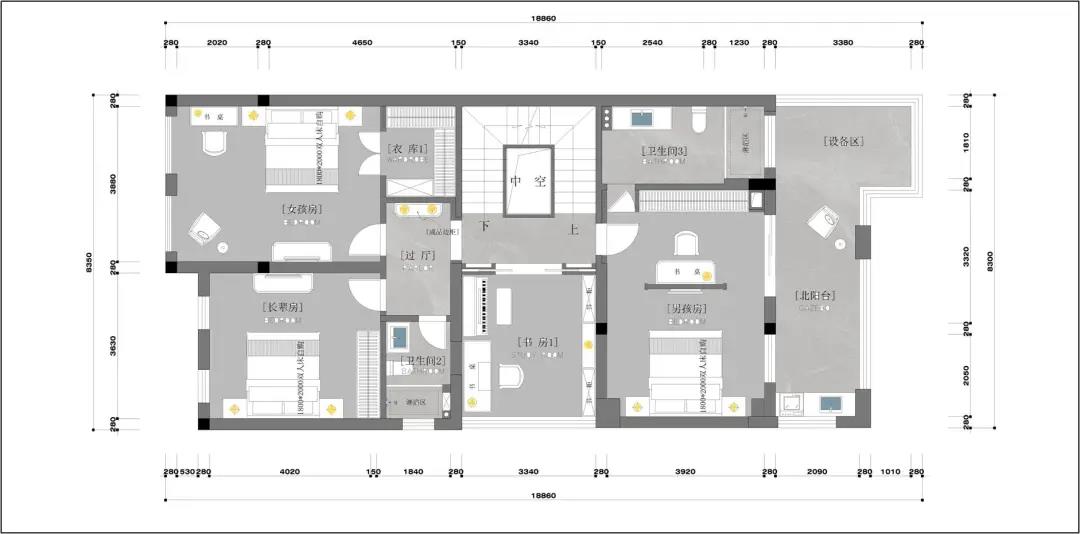 二樓是女兒的開放式臥室空間,樓梯本身做了懸浮設計,效果超級美觀!