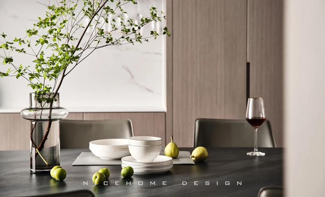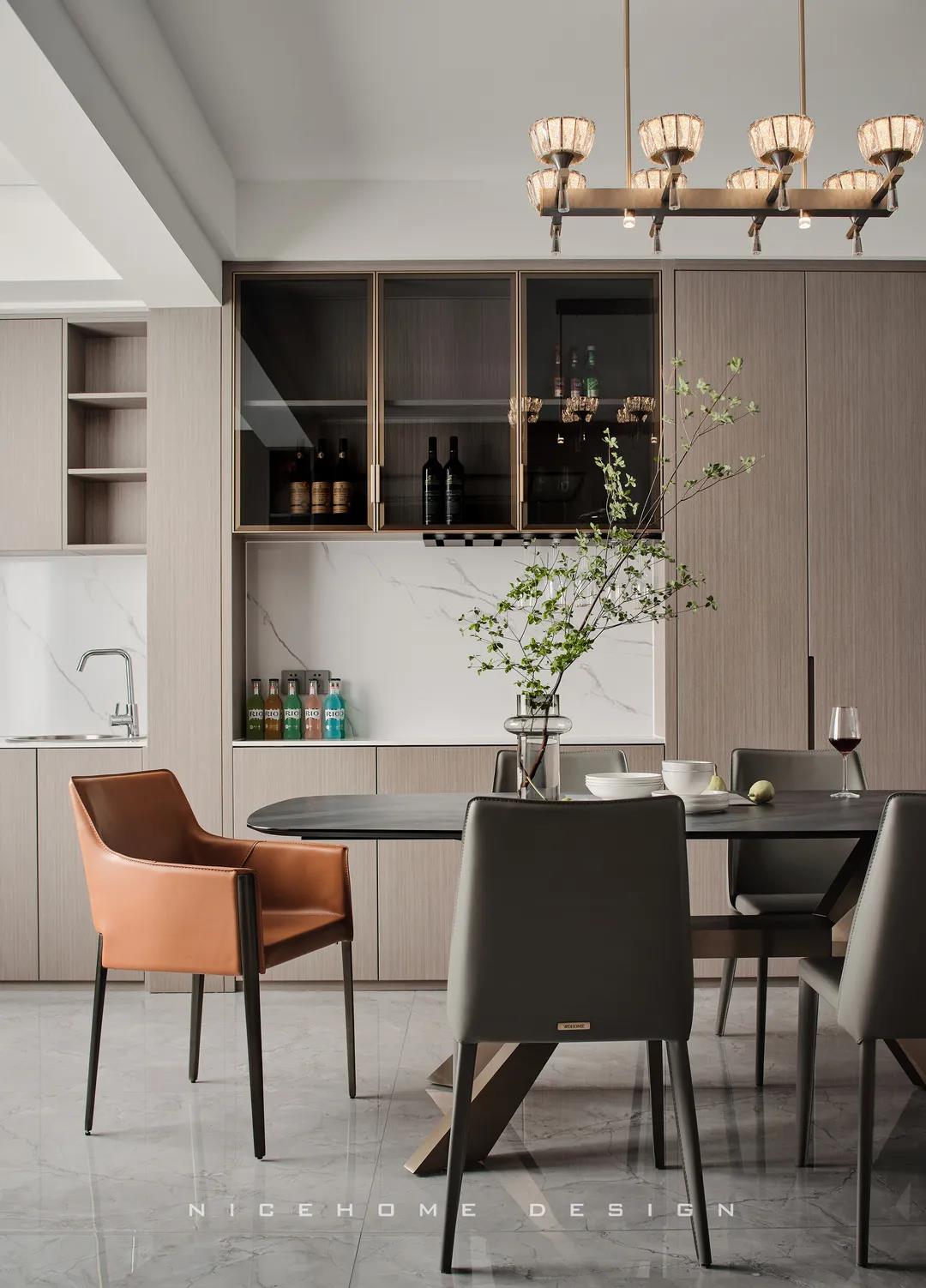 【項目·信息】 地址 / 銀億東岸 戶型 / 四室兩廳 面積 / 200㎡ 風格 / 現代簡約 設計施工 / 浙江南鴻裝飾 1 關于作品 本案以現代簡約為主題,簡潔明快的設計風格為主調,著力體現家的精致與個性,符合現代人的生活品味。 公共區域整體采用暖咖和黑、白色調,溫和親切又帶著現代感的利落灑脫,木格柵增強視覺效果,軟裝上則重點用橙色點綴,烘托溫馨氣氛與活力感受。 2 戶型圖 3 設計落地 玄關 ENTRANCE 玄關端景處一幅格外醒目的復刻畫,大色塊的紅彰顯熱烈、前衛,寓意主人對新生活的愛和熱忱,從今往后,要把每一天都過得“熱氣騰騰”! 客廳 LIVING ROOM 客廳,暖咖色伴隨著溫柔的觀感,讓時光也仿佛靜止于此。沒有特別多收納設計,這里的一切布置均以“美”為第一要義。 電視背景墻的設計,低調中透著華麗。高顏值的大理石磚搭配錯落有致的木格柵,冷暖結合,細節處再點綴光影,簡潔而富有格調。 木質格柵,素來自帶一種東方禪意之美,虛實相生,正是架構意境的獨到方式。木飾面板中藏起通往次臥的房門,視覺高度統一。沙發與茶幾選擇低矮款式,有利于縱向拉伸層高。 餐廳 DINING ROOM 一個優秀的餐廳,光靠視覺,就能成功挑動你的味蕾,再平凡的食物也因此裹上了一層美好滋味。 整排餐邊柜兼做酒柜,玻璃柜內藏酒,儲物柜里存放食品,實用性與美觀度都是一流。窗邊做了小水吧,延續廚房的功能,餐前餐后的手部清潔也更方便。 在這里每天給孩子做一頓愛心早餐,給愛人煮一壺香醇的咖啡,幸福的感覺就這樣漸漸氤氳開來。 廚房 KITCHEN 廚房寬敞明亮,黑色櫥柜較一般櫥柜而言更能凸顯質感,功能設備完善,在吊頂上也做足了功夫,造型感與線條感呼應整體風格。 過道 CORRIDOR 溫潤的木材非常容易給人親近的感覺,無形中就消弭掉空間與居者的距離。過道一側設計儲物區域,層架上適合擺放書籍、小飾品等,空間瞬時生動了起來。 臥室 BEDROOM 主臥延續公共區域的色調,米灰色硬包和木飾面,讓溫暖、淡雅的味道徘徊其中。一盞暖意小吊燈垂下,增強空間的調性,小飄窗則賦予臥室更多的浪漫色彩,和對生活的美好想象。 次臥,皮藝、布料、金屬與線條的融合,交匯出高品質精致感。 粉色是兒童房一直在流行的主題,許多女孩子的夢里或許都有這樣一個如童話般的飄著粉紅泡泡的房間吧~