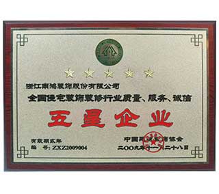 全國住宅裝修行業(yè)質(zhì)量、服務(wù)、誠信五星企業(yè)